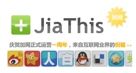 JiaThis是國內(nèi)最大的社會化分享到按鈕提供商:提供分享到QQ空間、新浪微博,分享到人人網(wǎng)、開心網(wǎng)、豆瓣等代碼...網(wǎng)站主可以在這里獲得按鈕代碼,嵌入到自己的網(wǎng)站上!